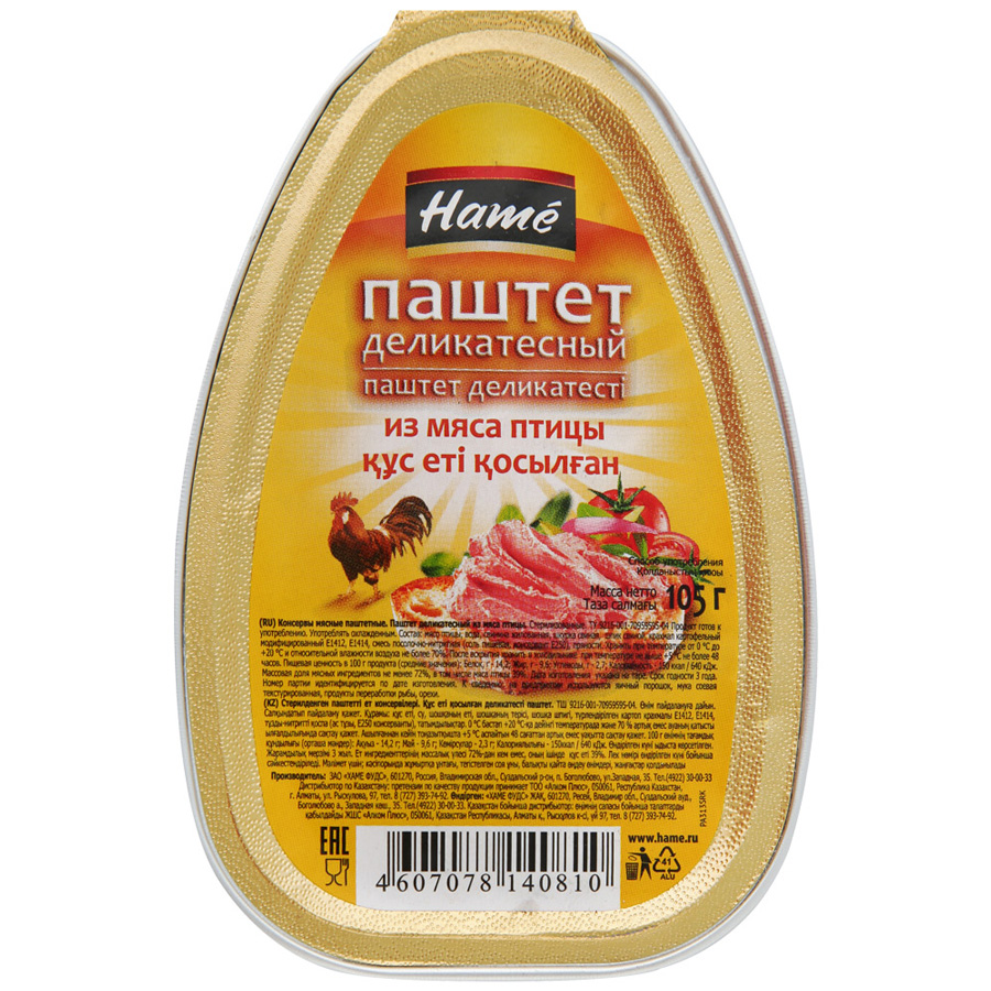 Паштет Hame деликатесный из мяса птицы 105г