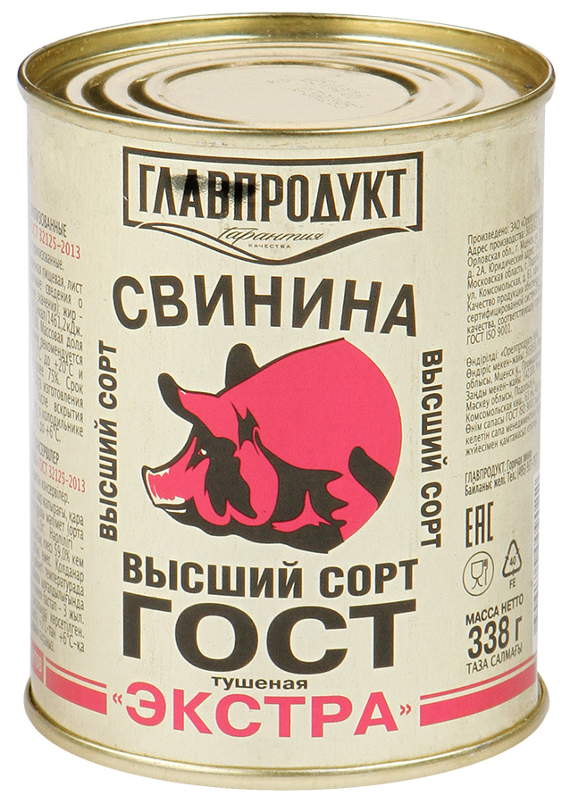 Свинина тушеная Главпродукт ГОСТ "Экстра", 338г