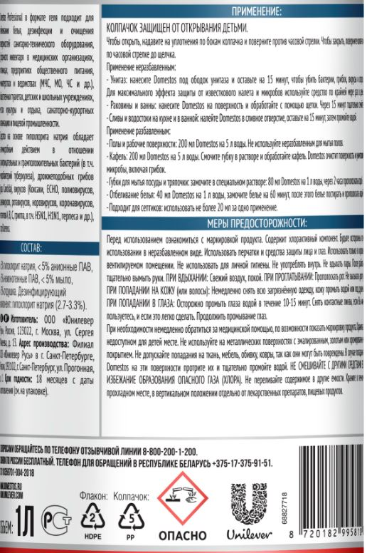 Средство чистящее Domestos Professional дезинфекция и очищение, 1л