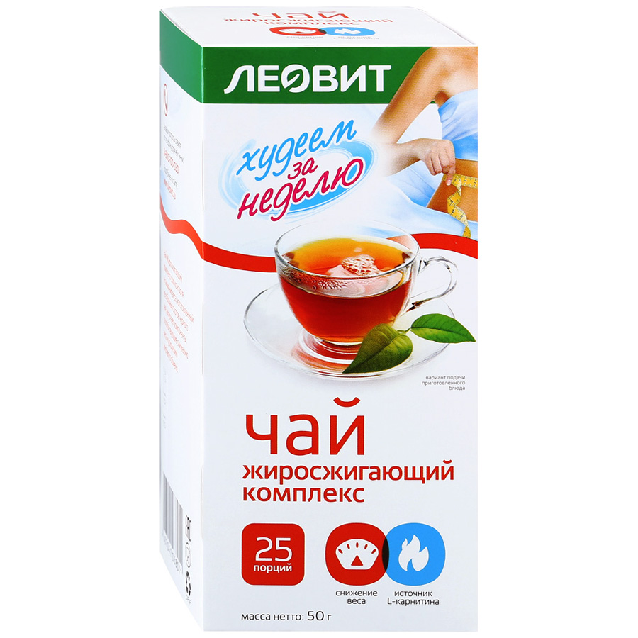 Чай Леовит Худеем за неделю Похудин Жиросжигающий комплекс 25 порций по 2 г