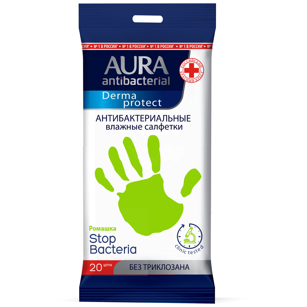 Влажные салфетки Aura Antibacterial очищающие с антибактериальным эффектом 20 штук