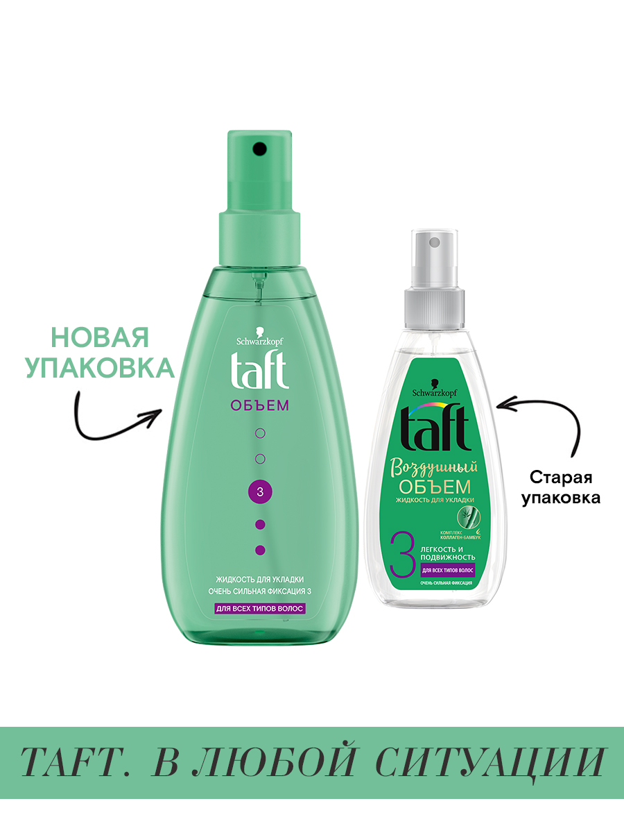 Жидкость для укладки волос Taft Три погоды Объем очень сильная фиксация 150мл