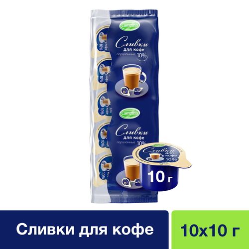 Сливки Campina питьевые стерилизованные 10% 10 г х 10 шт