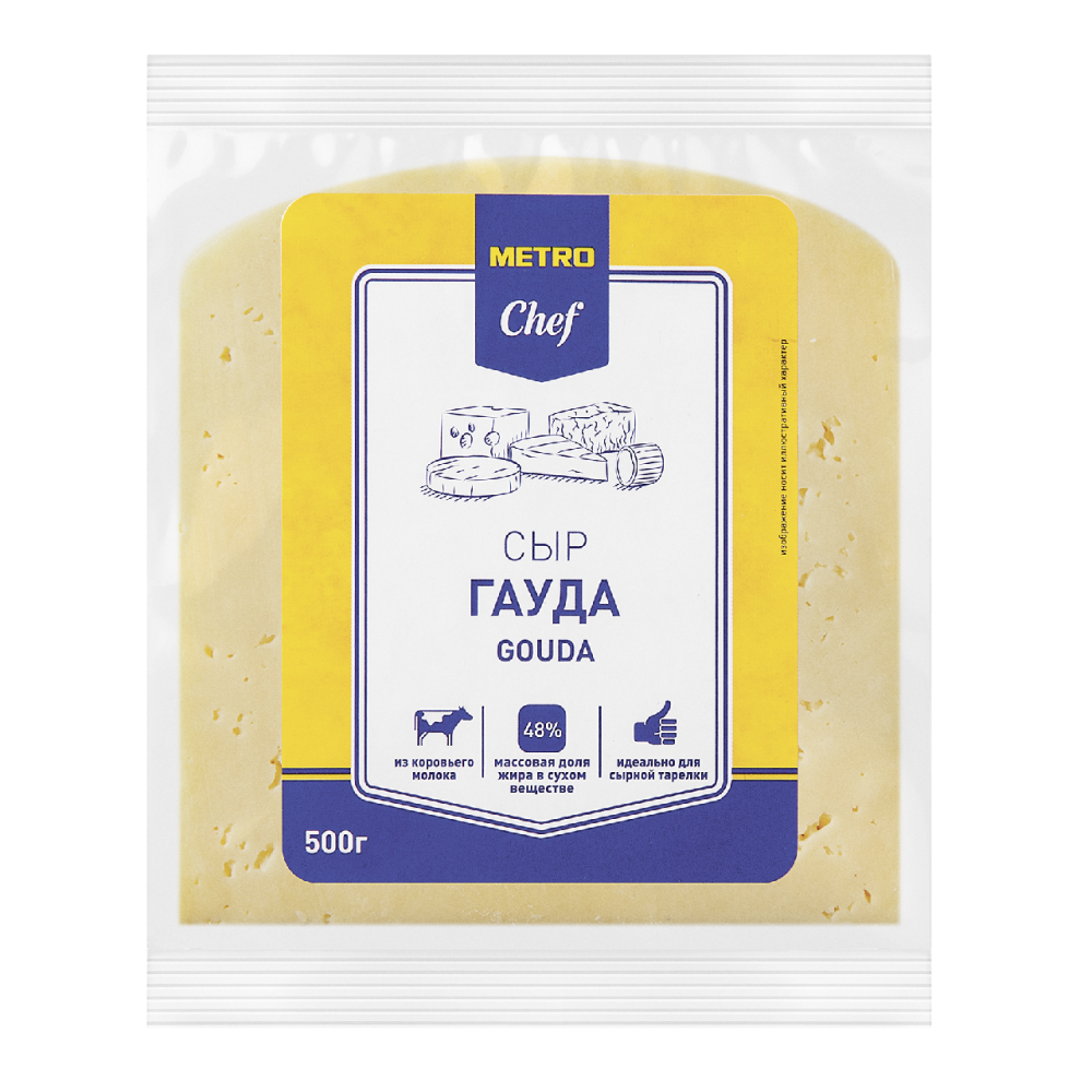 METRO Chef Сыр полутвердый Гауда 48% кусок 500г БЗМЖ
