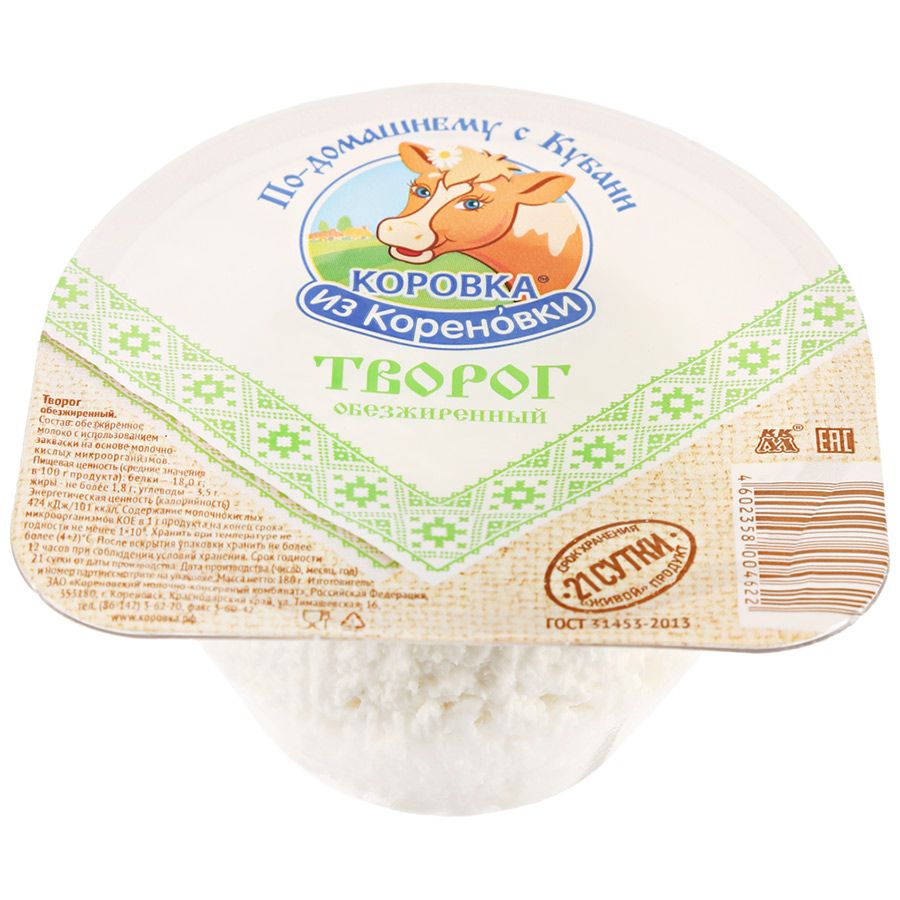 Творог Коровка из Кореновки обезжиренный, 180г