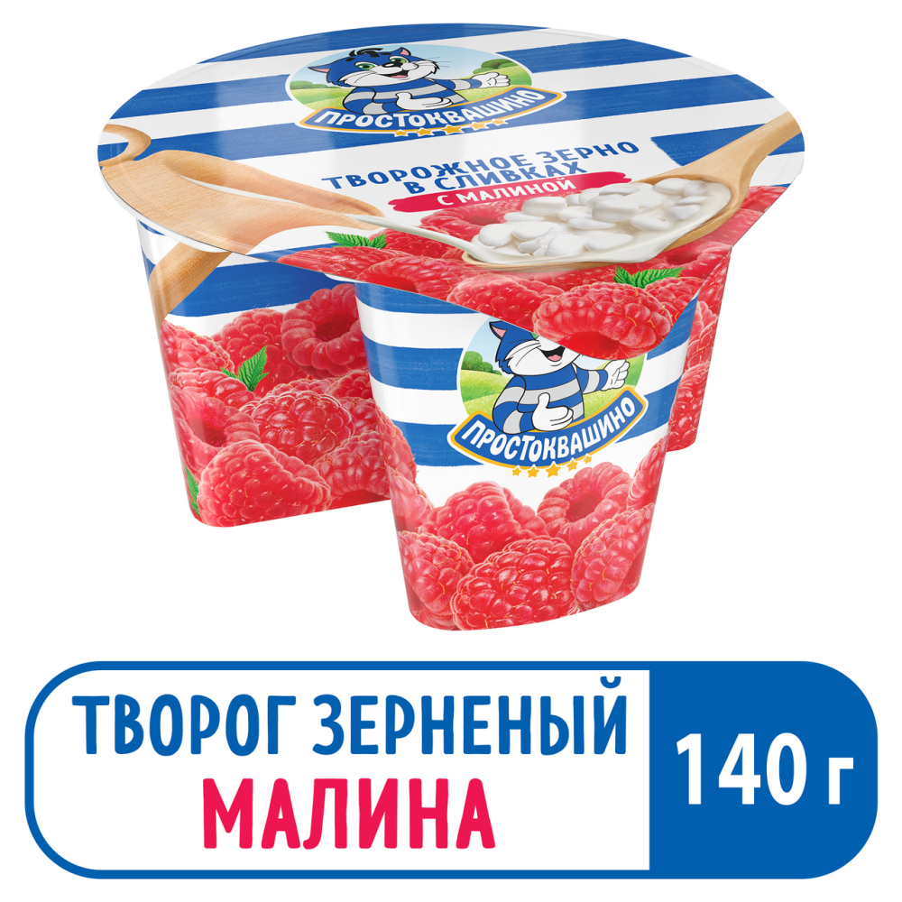 Зерненый творог Простоквашино в сливках с малиной 5% 140г – вкусный, натуральный и полезный продукт со свежими сливками и нежной текстурой. Отличный сливочный вкус, без сухого молока и растительных жиров. Прекрасно подойдёт для завтрака или перекуса в течение дня. Просто объедение!