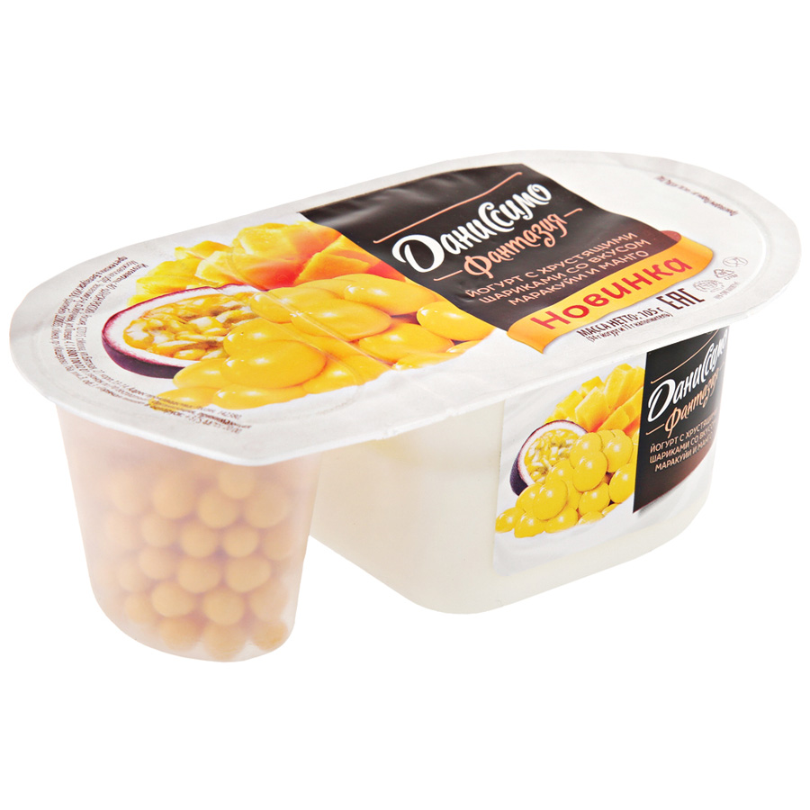 Йогурт Даниссимо Фантазия с хрустящими шариками со вкусом маракуйи и манго 6.9% 105 г