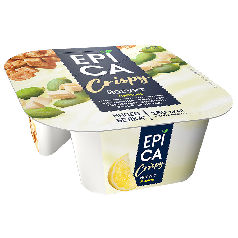 Йогурт Еpica Crispy с лимоном и смесь из семян тыквы, печенья и белого шоколада 8,6%, 140г