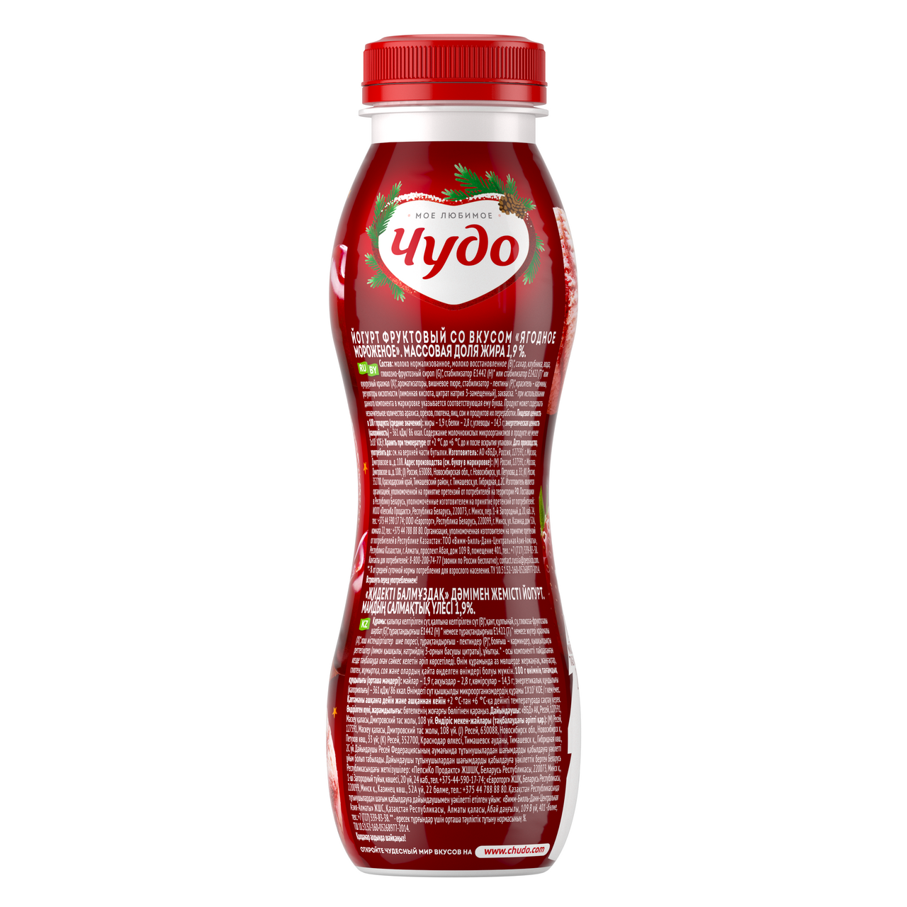 Йогурт питьевой Чудо Ягодное мороженое 1.9%, 260г