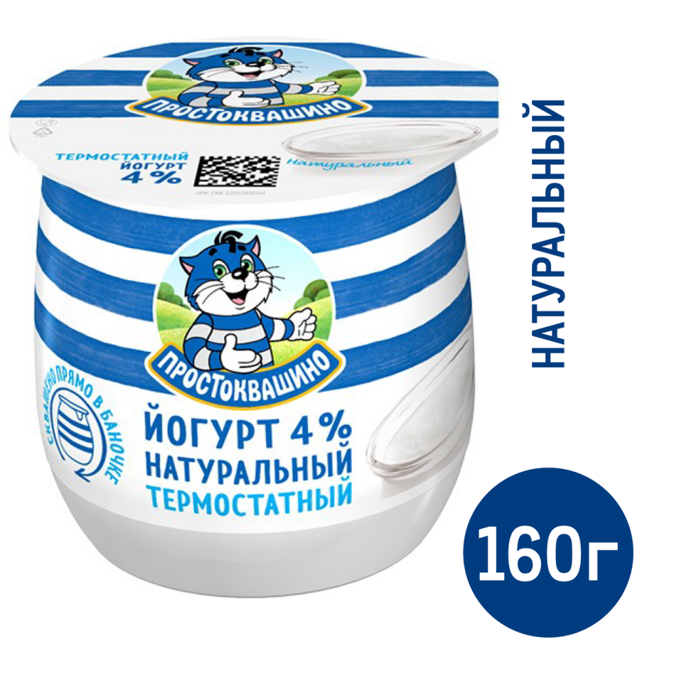 Йогурт термостатный Простоквашино натуральный 4%, 160г