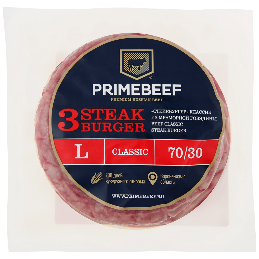 Котлета Стейкбургер Классик, из мраморной говядины Праймбиф, охлажденный 390 г
