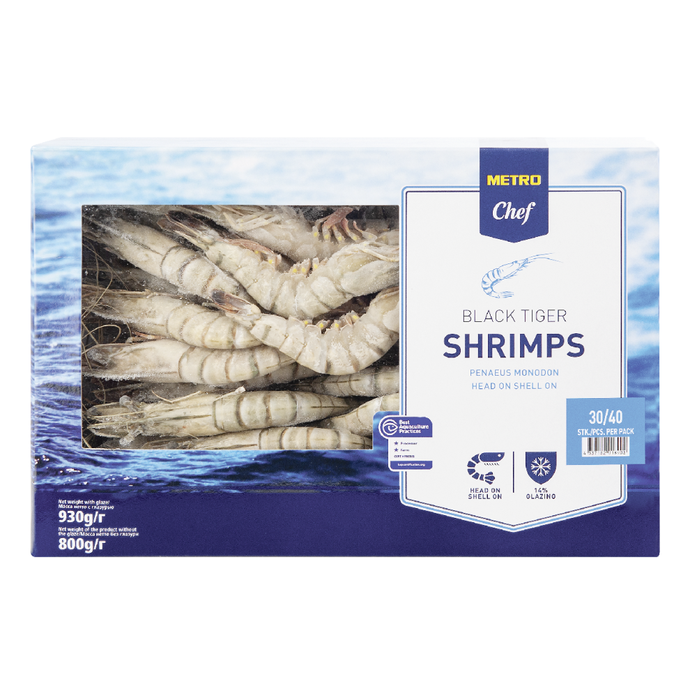 Креветки Metro Chef тигровые свежемороженые 30/40 800 г