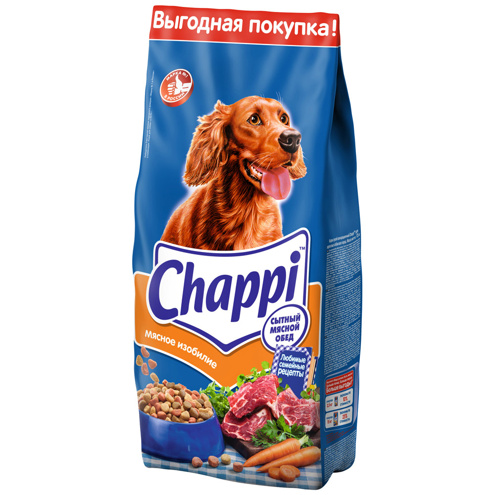 Корм сухой для собак Chappi полнорационный Сытный мясной обед мясное изобилие 15 кг